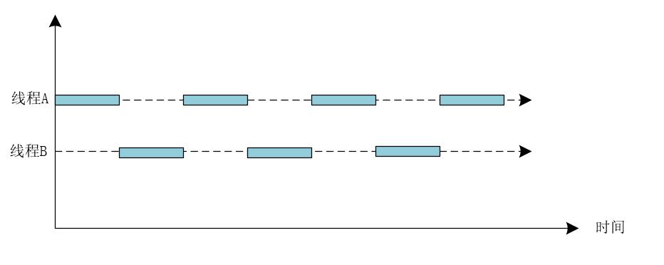 并发指的是在同一时刻,只有一个线程能够获取到CPU执行任务,而多个线程被快速的轮换执行,这就使得在宏观上具有多个线程同时执行的效果,并发不是真正的同时执行,并发可以使用下图表示。
