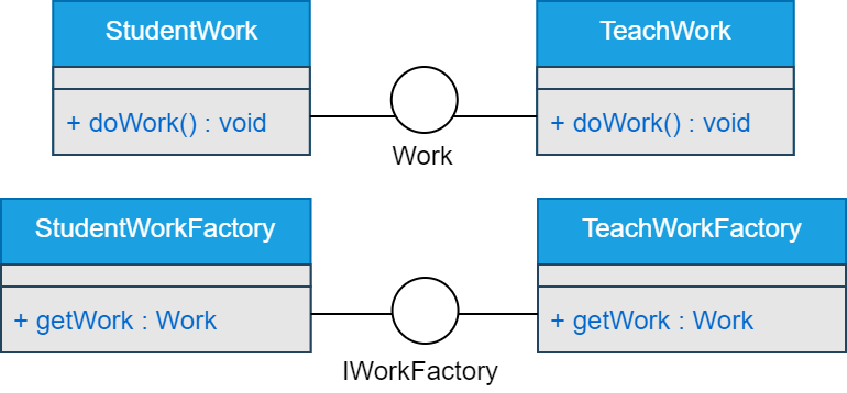 IWorkFactory teacherWorkFactory = new TeacherWorkFactory();