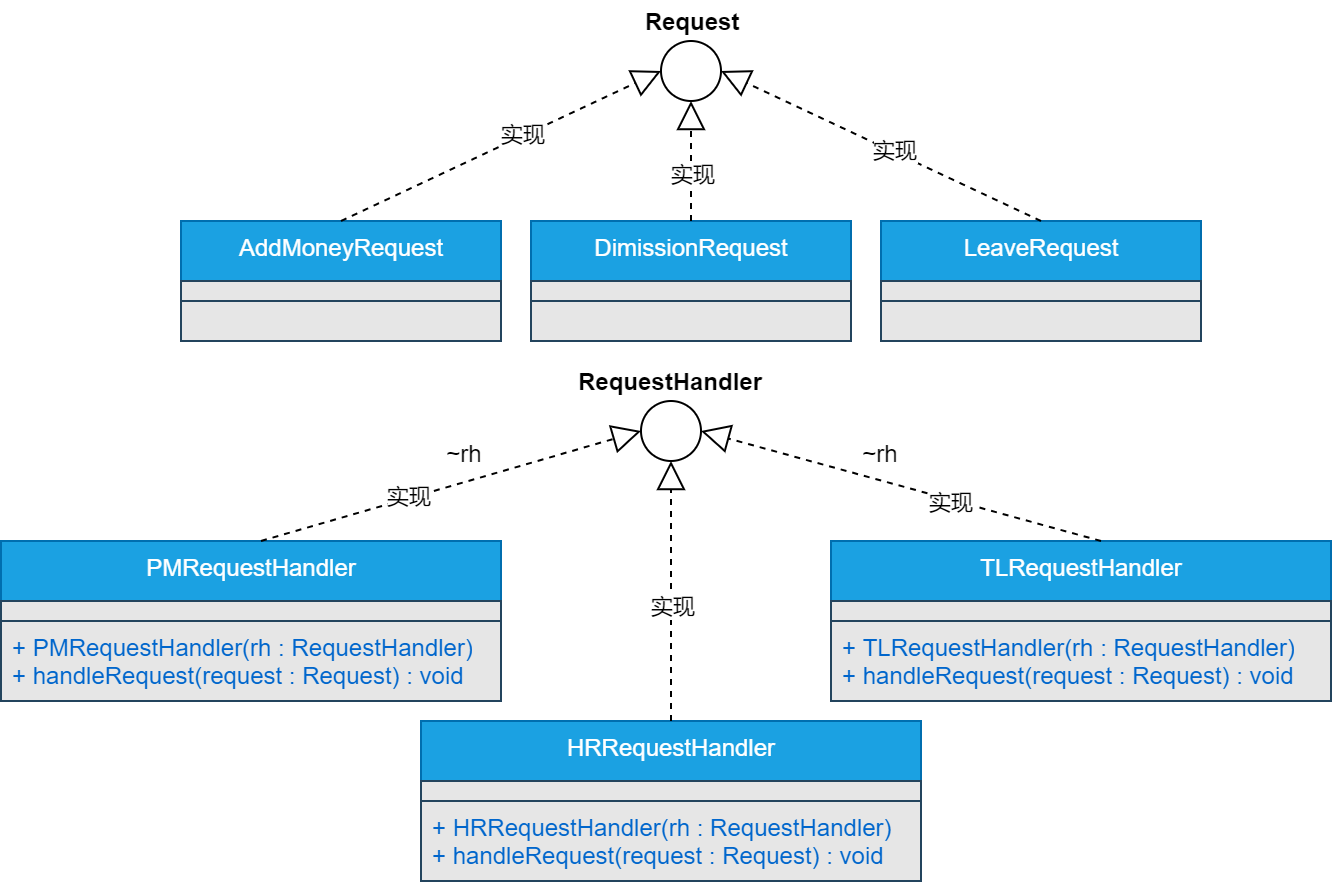 2.ConcreteHandler 处理它所负责的请求。 可访问它的后继者。 如果可处理该请求,则处理;否则将该请求转发给它的后继者。