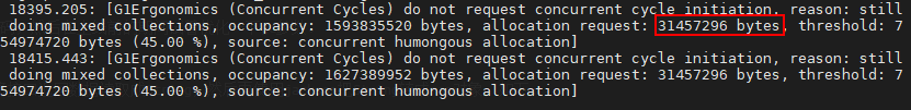- 从上面do not start mixed GCs, reason: candidate old regions not available的日志中看到,mixed gc日志之所以长时间没出来,是因为没有可回收的region导致mixed gc没有执行,因为我们只创建了大对象,但mixed gc不回收大对象分区,所以确实是没有可回收的region的。