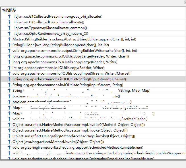 根据调用栈我发现,这是我们的一个定时任务,它会定时调用一个接口获取配置信息并缓存它,而这个接口返回的数据量达14M之多。