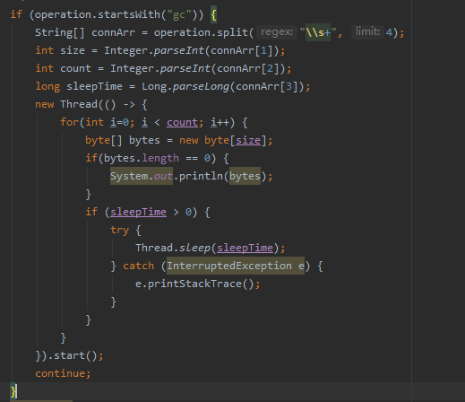 通过在这个交互程序中输入gc 9437184 20 0,可以生成20个9M的大对象。