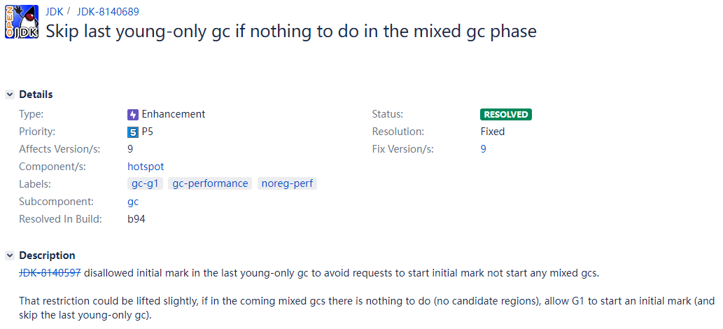 当我在jdk的bug库中搜索问题时,发现不少和G1大对象相关的优化,早期JDK(如JDK8)的G1实现可能在大对象回收上不太完善,所以写代码时要注意尽量少创建大对象,以回避这些隐性问题。