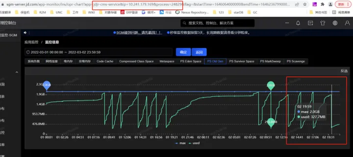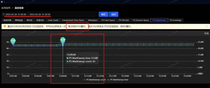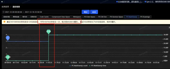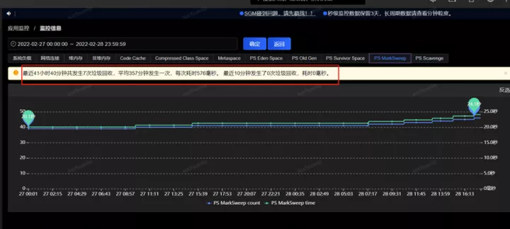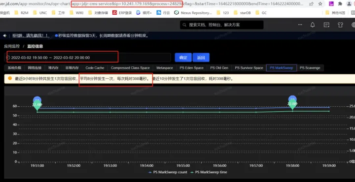 通过把时间范围聚焦到发生GC的某一时间段,从监控指标图可以看到swapUsed没有任何变化,也就是说没有swap活动,进而没有影响到垃级回收的总耗时。