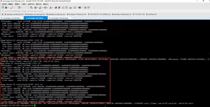 为了验证GC耗时与swap操作有必然关系,我抽查了十几台机器,重点关注耗时长的GC日志,通过时间点确认到GC耗时的时间点与swap操作的时间点确实是一致的。