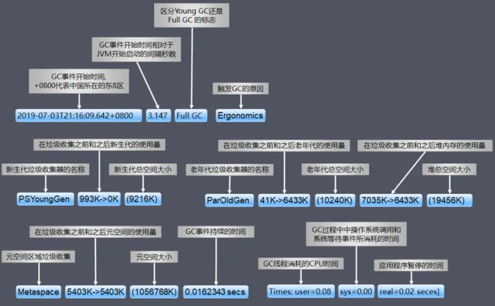 这里Full GC的reason是Ergonomics,是因为开启了UseAdaptiveSizePolicy,jvm自己进行自适应调整引发的Full GC。