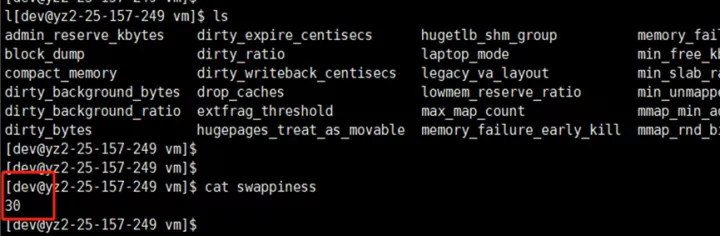 - 查看swappiness值,cat /proc/sys/vm/swappiness