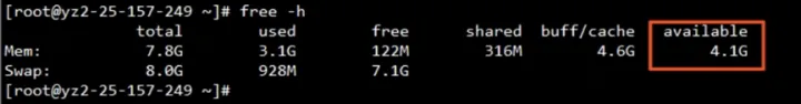 buff/cache:缓冲、缓存区内存数(使用过高通常是程序频繁存取文件)
