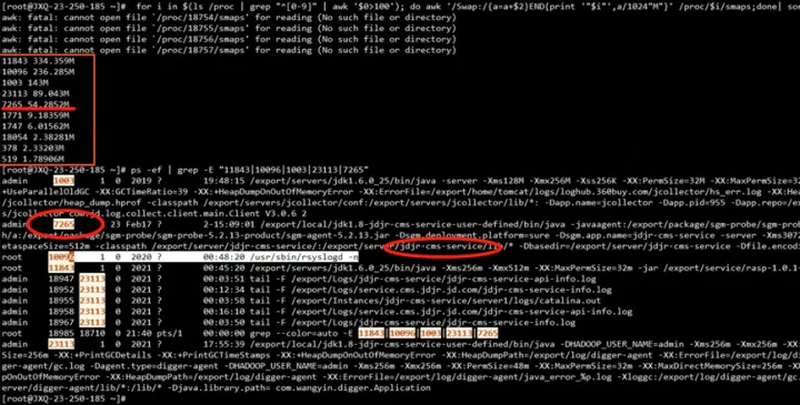 为了验证JVM是否用到swap,我们通过检查proc下的进程内存资源占用情况