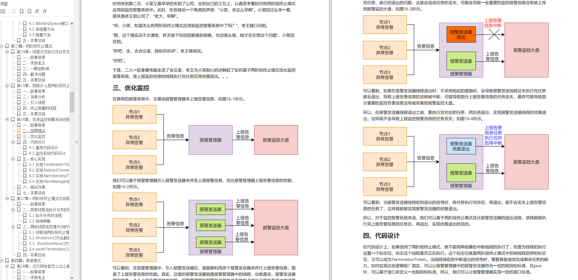 这本电子书涵盖12种最核心,也是最常用的并发设计模式,核心内容共12个大的篇章,60多个章节,涉及到多个真实场景的案例,包含:社区电商系统、消息聚合发送系统、交易系统、监控报警系统、积分系统、优惠券系统、文件同步助手、个人文库系统、商详页系统、单点登录系统、报表系统、热点商品统计系统、实时交易统计系统。