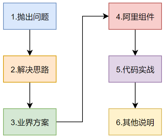 每个章节的内容形式上先抛出某个问题,针对这个问题给出解决的思路,再探讨业界的一些通用解决方案,针对本专栏的定位结合阿里组件解决问题,接下来就是代码实战,最后针对当前章节给出其他必要的总结和说明。