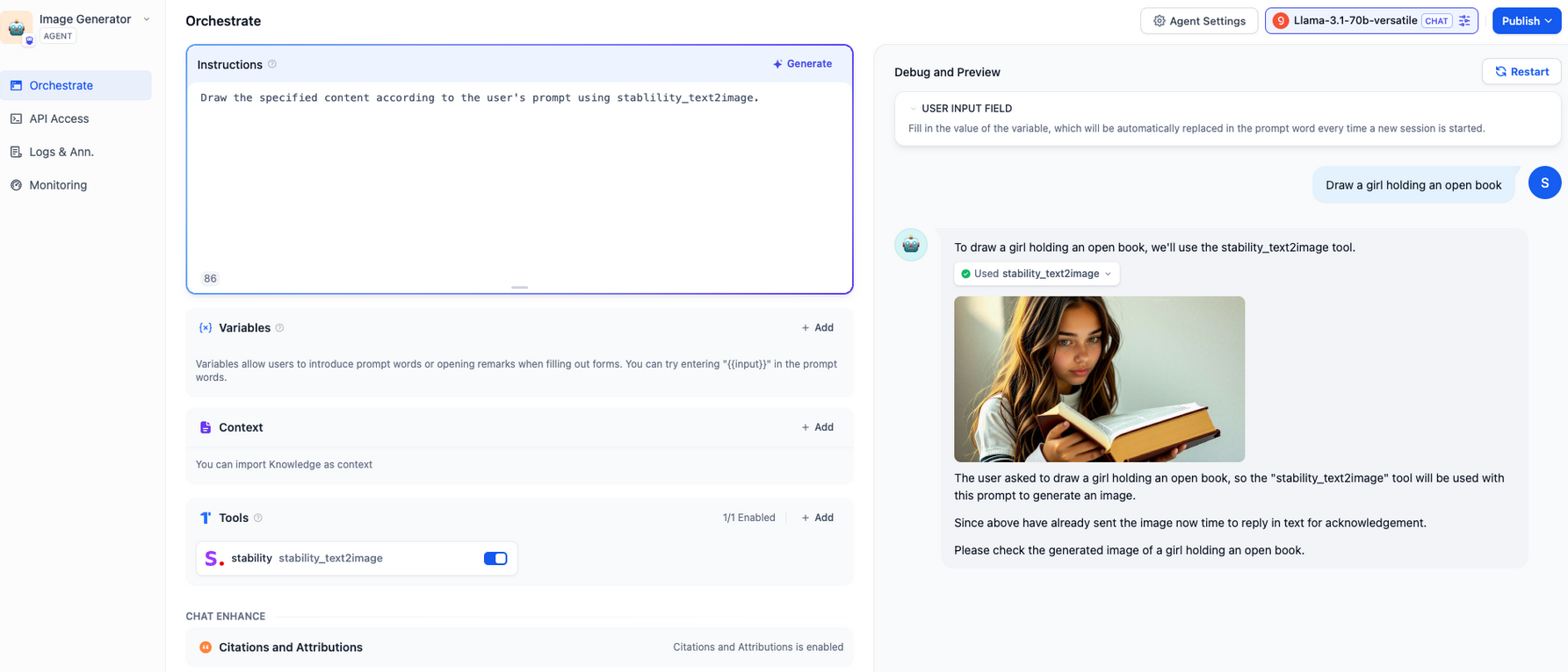 当前AI图像生成技术正以前所未有的速度发展,Dall-e、Flux、Stable Diffusion等优秀产品不断推动着创作边界的拓展。今天,我们一起通过Dify平台结合Stability AI的强大能力,构建一个功能完整的AI图像生成应用。