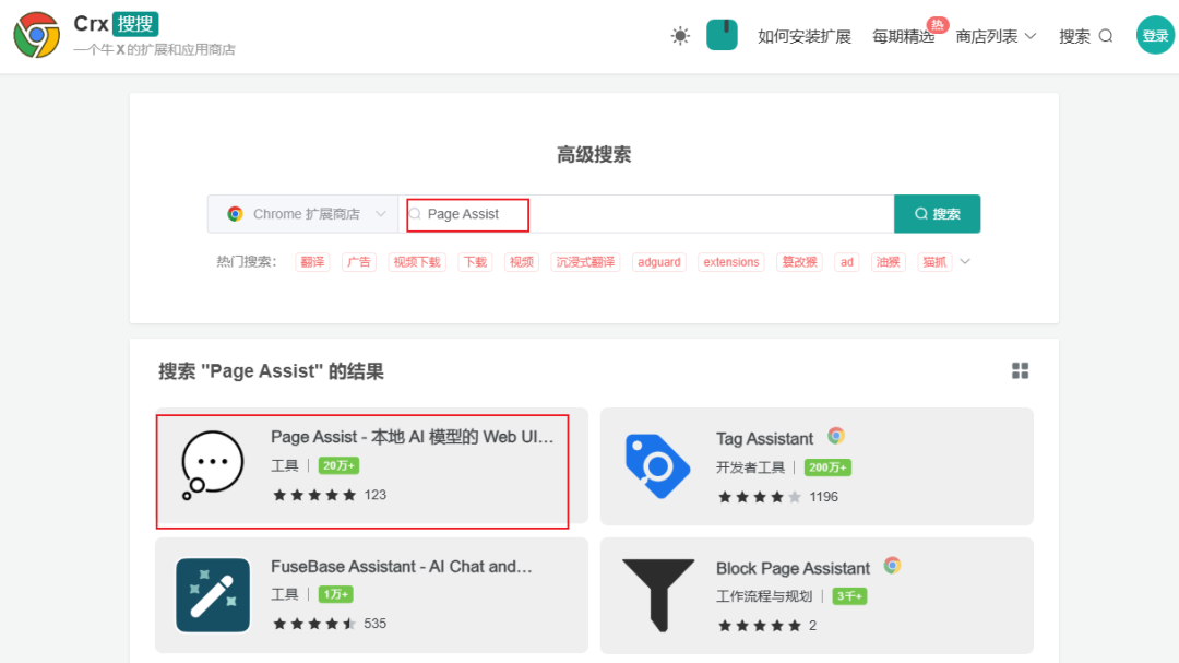 搜索:Page Assist,第一个就是今天主角,本地AI模型的Web UI。