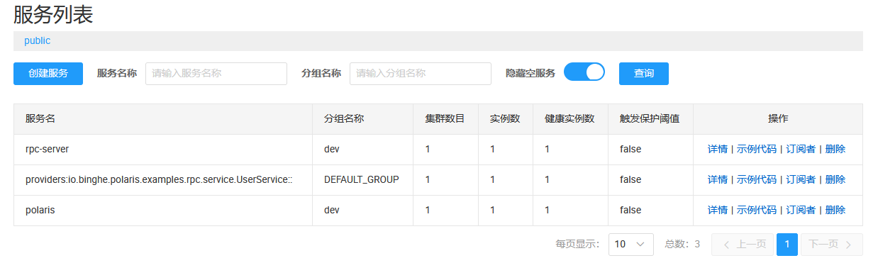可以看到,启动网关后也会自动注册到注册中心,网关的服务名称为polaris。
