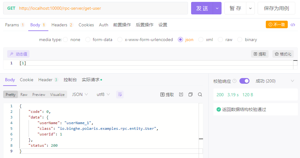 - 再次启动后端服务,通过网关访问后端服务RPC接口,正确返回用户信息。