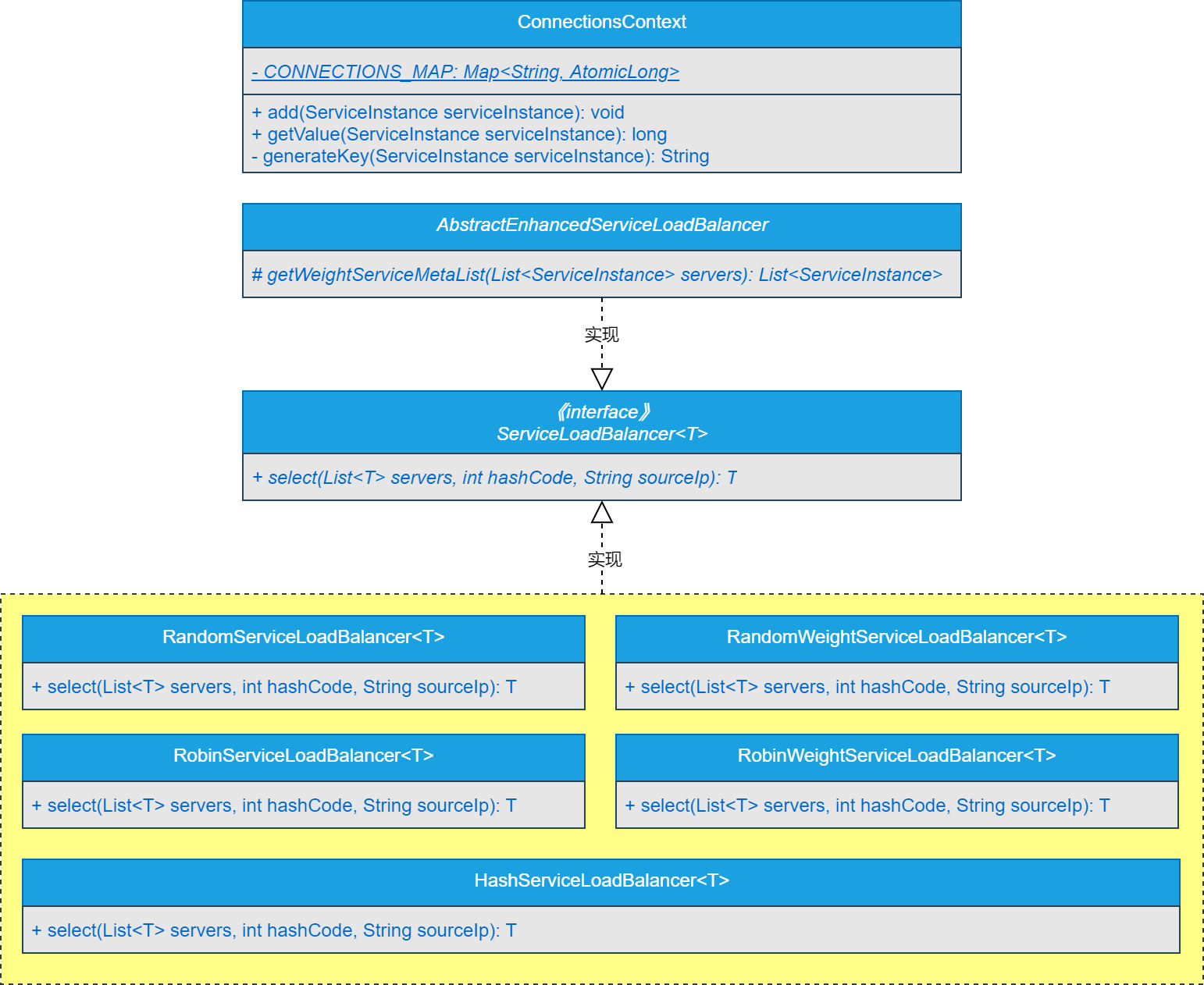 基于自定义SPI扩展实现哈希算法负载均衡策略的类图如图6-1所示。
