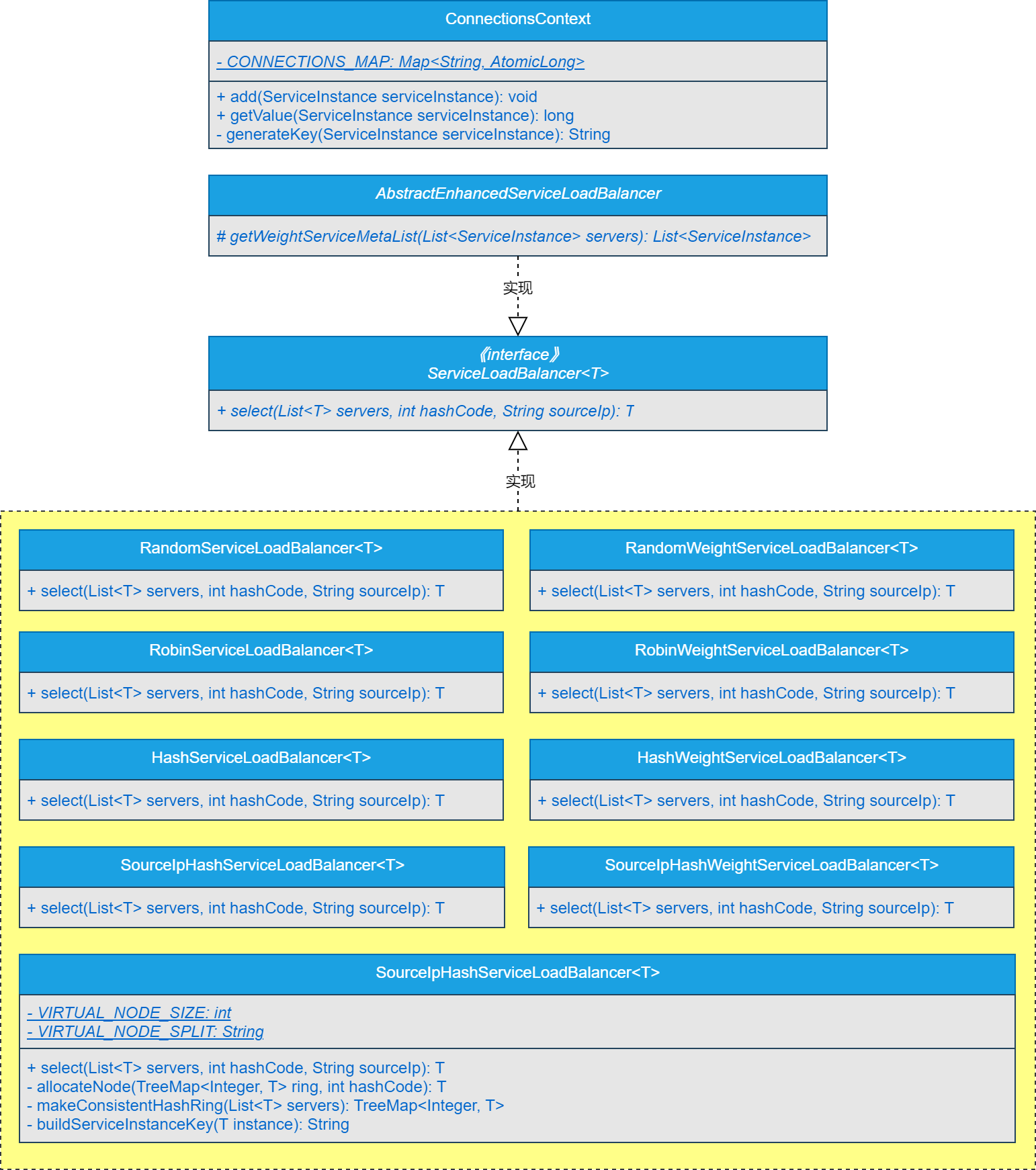 同时,在负载均衡篇章,已经完成了负载均衡通用SPI接口与顶级抽象类的设计与实现,并基于自定义SPI扩展实现了随机算法负载均衡策略、加权随机算法负载均衡策略、轮询负载均衡策略、加权轮询负载均衡策略、哈希负载均衡策略、加权哈希负载均衡策略、源IP地址哈希负载均衡策略和源IP地址加权哈希负载均衡策略。