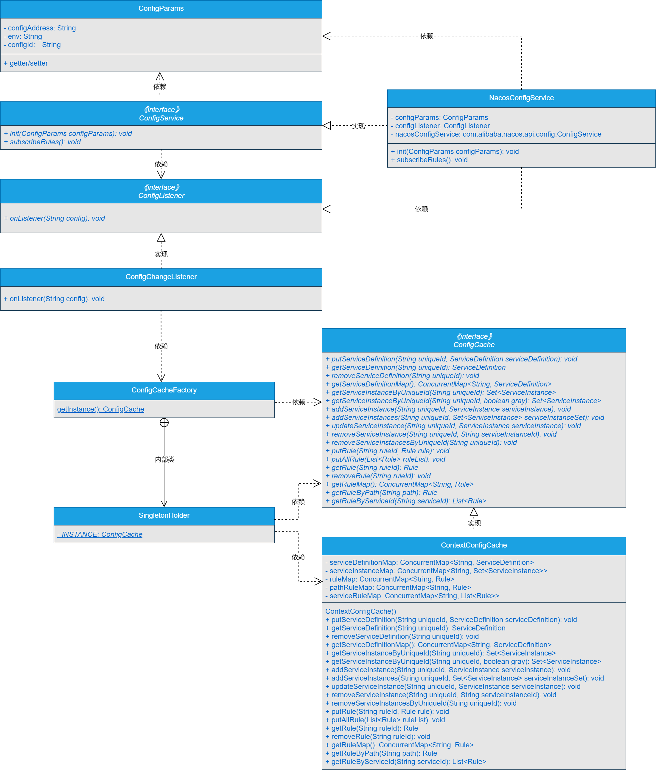 基于SPI扩展实现Nacos配置中心的类图如图2-1所示。