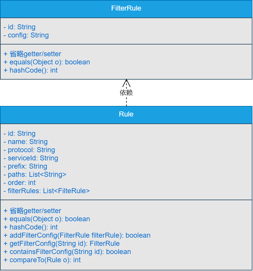 可以看到,在设计网关的配置类时,我们将其抽象出FilterRule和Rule两个类。