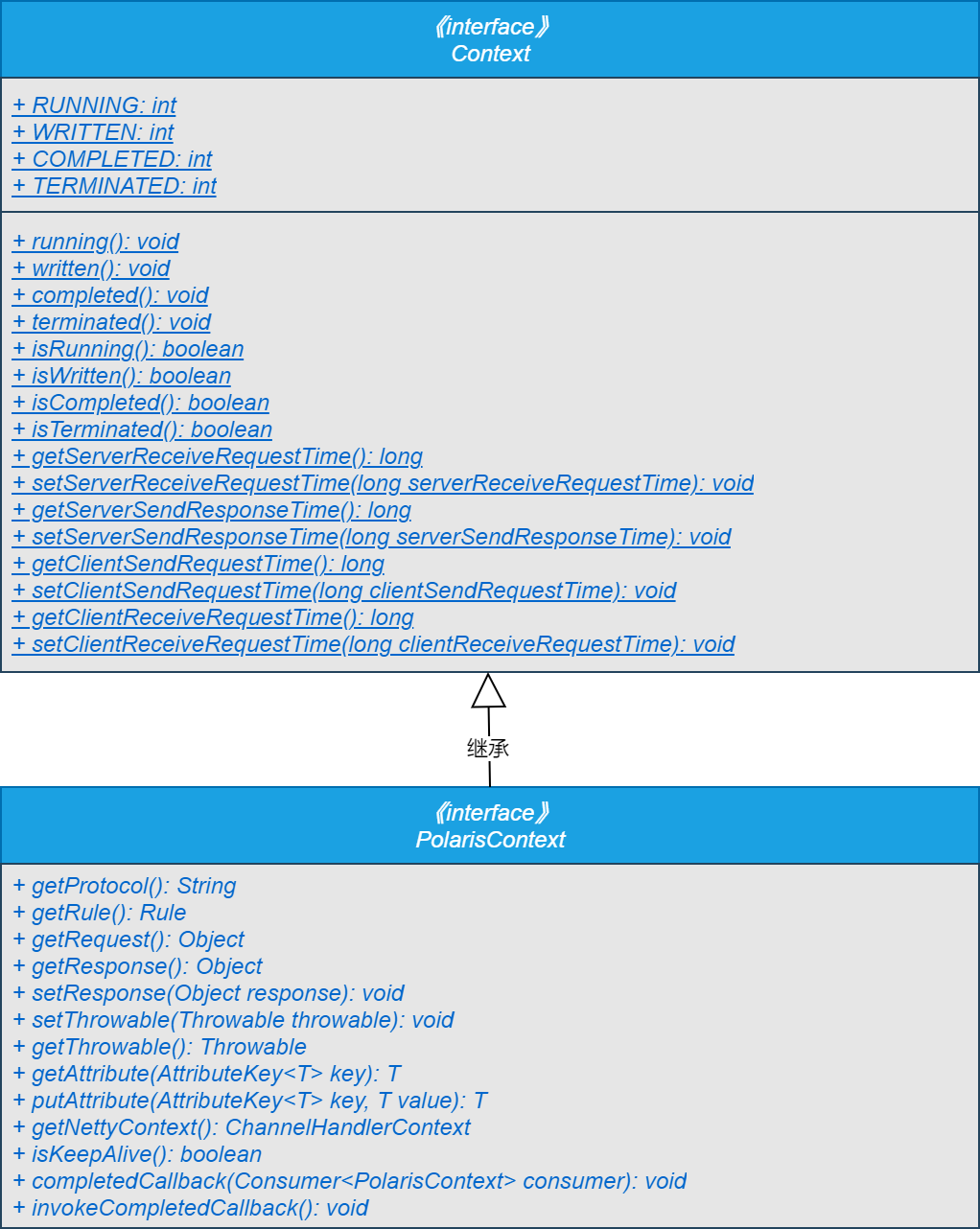 PolarisContext接口继承Context接口,是网关上下文最核心的接口,提供的核心方法如下所示。