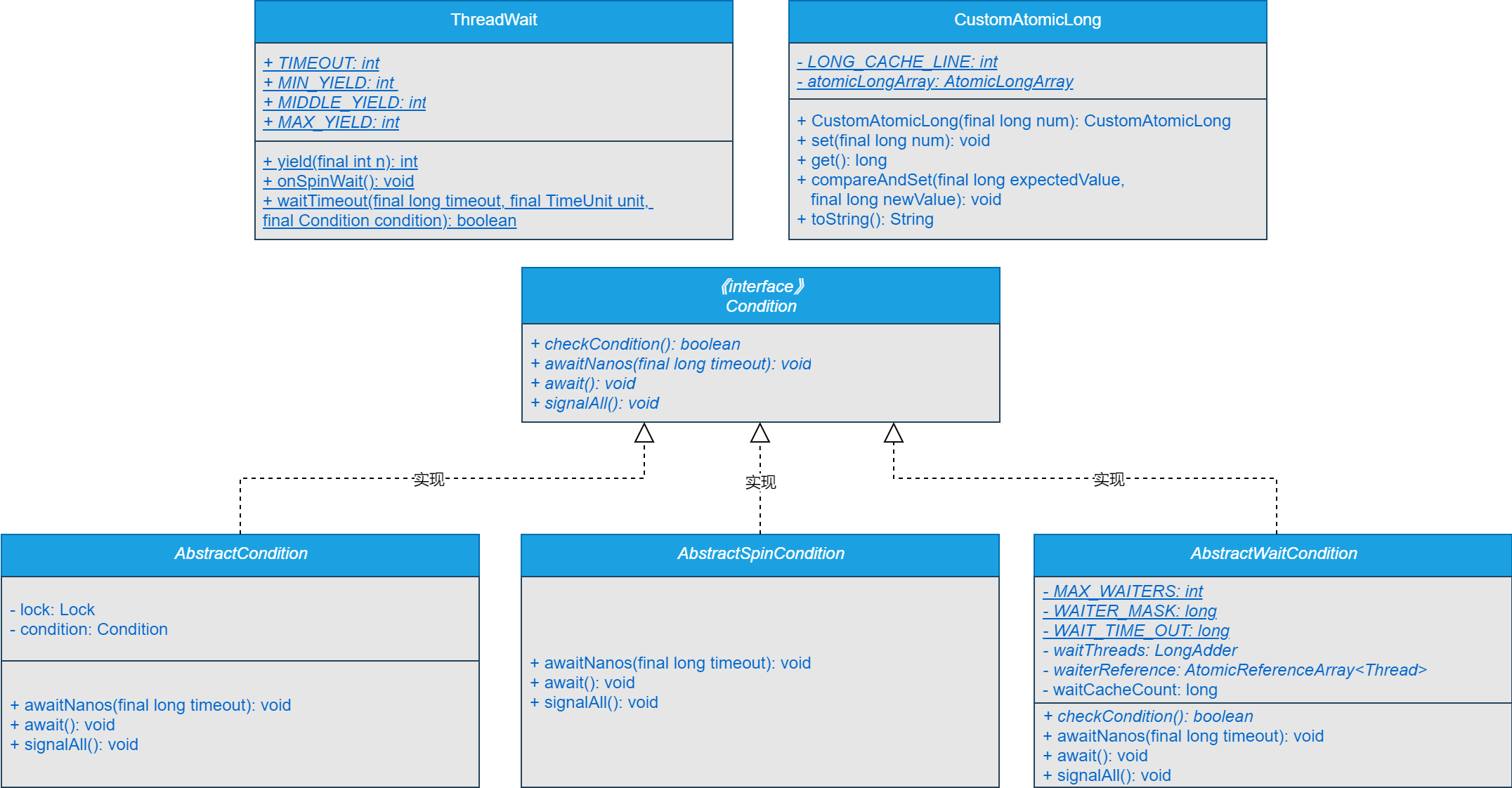 在设计和实现MPMC缓冲队列的过程中,已经对MPMC模式缓冲队列的Condition接口和ThreadWait类进行了设计和实现,并且对抽象Condition类和抽象自旋与等待Condition类进行了设计和实现。为了更好的提升网关的性能,接下来,我们结合网关对自定义AtomicLong进行设计实现。
