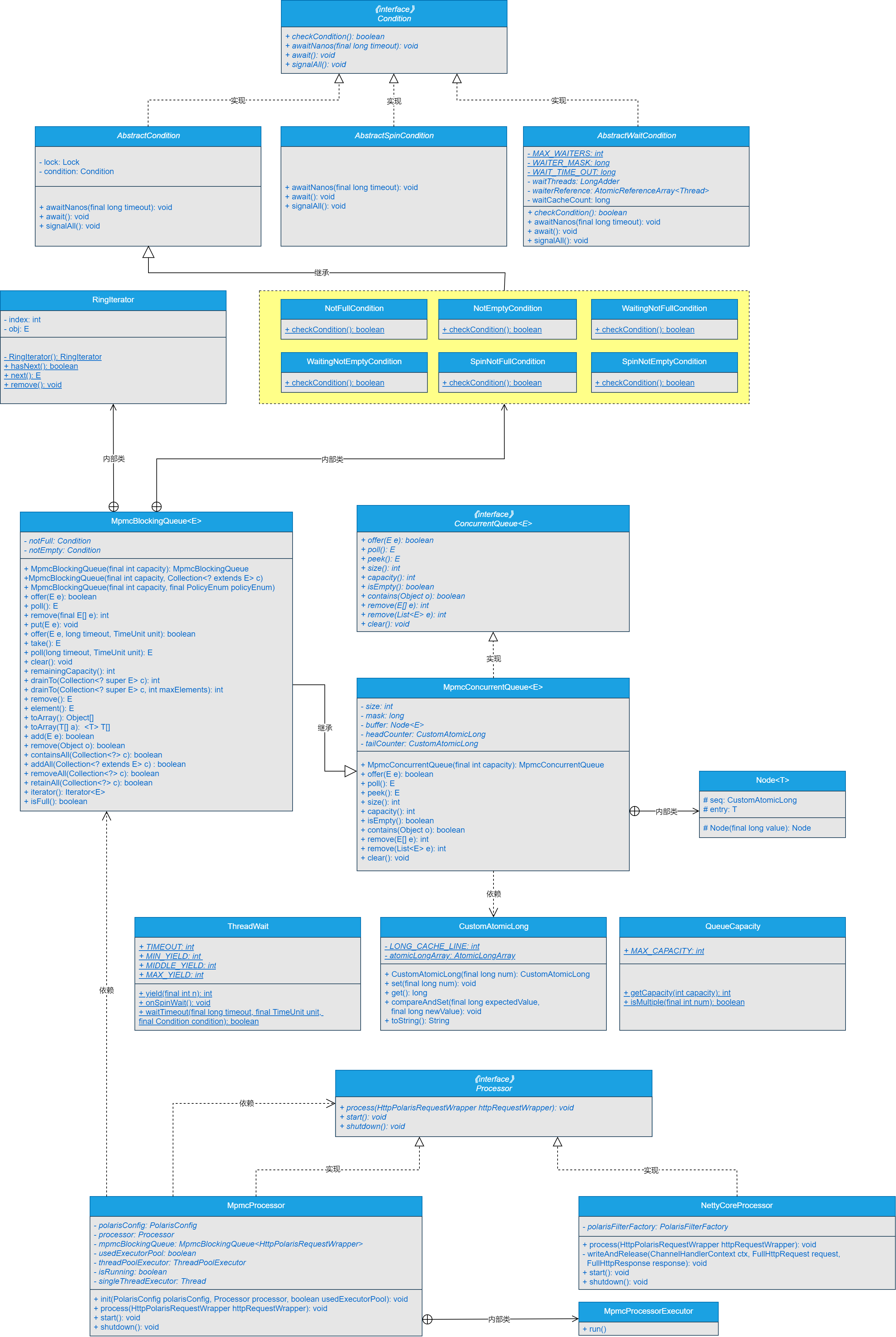 在网关的处理器设计中,我们重点设计和实现了通用处理器接口,基于Netty实现了核心处理器的功能,并且基于BatchEvent和MPMC两种模式实现了缓冲队列。在实现缓冲队列时,重点参考了JDK的队列实现,并且在JDK队列实现的基础上,做了进一步优化。所以,各位小伙伴们在学习自定义缓冲队列时,可以结合JDK的Queue接口及其实现类等深入学习和理解。