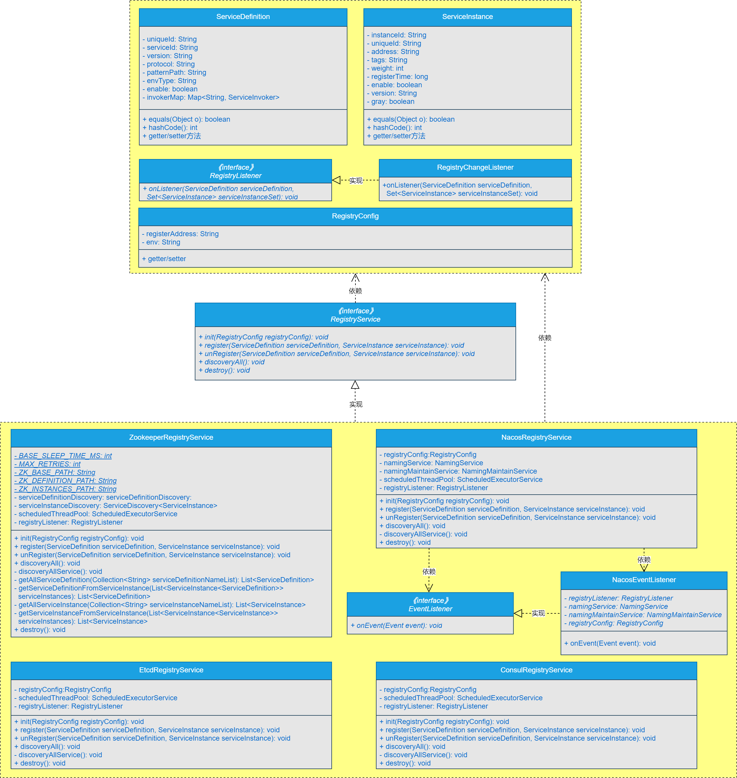 ConsulRegistryService类是基于自定义SPI扩展实现Consul注册中心的核心实现类,ConsulRegistryService类会实现RegistryService接口,并实现RegistryService接口中定义的方法。