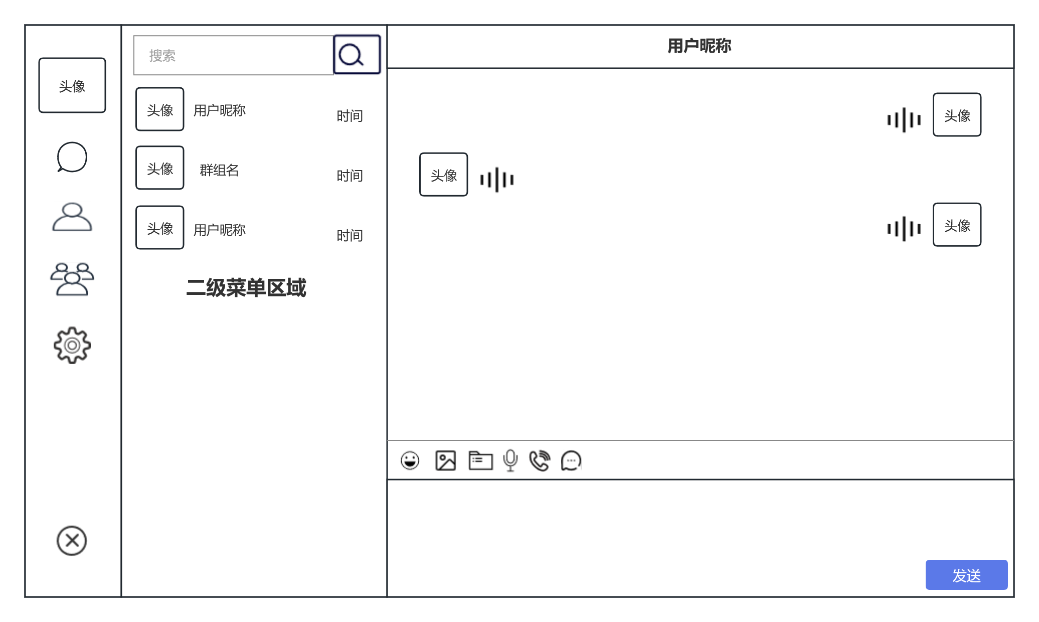用户登录分布式IM即时通讯系统后,不管是单聊还是群聊,都可以查看历史消息,用户查看历史消息的入口按钮原型设计草稿如图7-1所示。