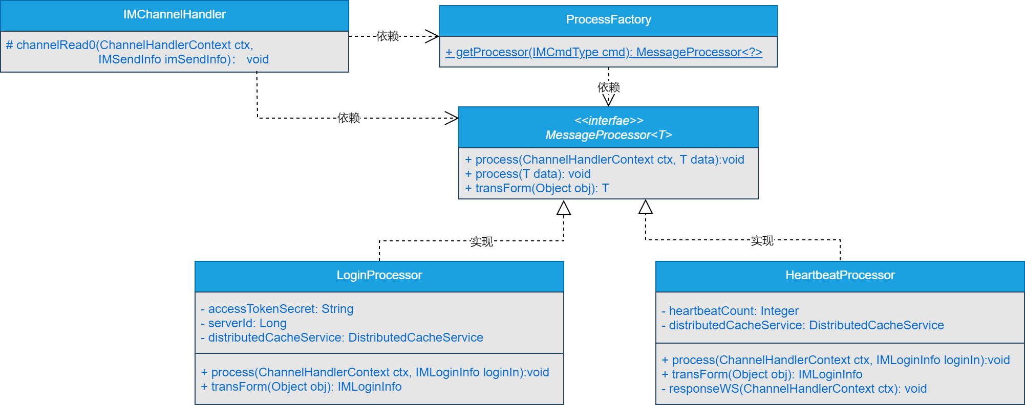 可以看到,整体类结构比较简单,我们只需要新增一个HeartbeatProcessor类,实现MessageProcessor接口,并在ProcessorFactory工厂类中进行配置即可。