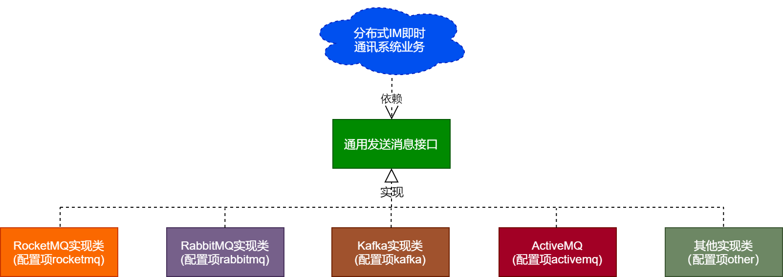 分布式IM即时通讯系统总体上是基于SpringBoot实现,那基于SpringBoot实现的代码如何才能具备良好的扩展性呢?这里,我们再来加深下对代码具备良好扩展性的原则的理解。总体的原则就是面向接口编程,而非面向具体的实现类编程,具体业务逻辑里依赖的是接口,而非实现类,在接口不变的前提下,可以随时切换具体的实现类,也可以随时新增接口的实现类。业务中可以根据配置加载接口的某个具体实现类。