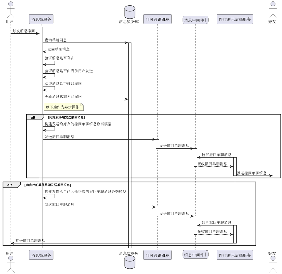 单聊消息的撤回流程比较简单,具体如图7-1所示。