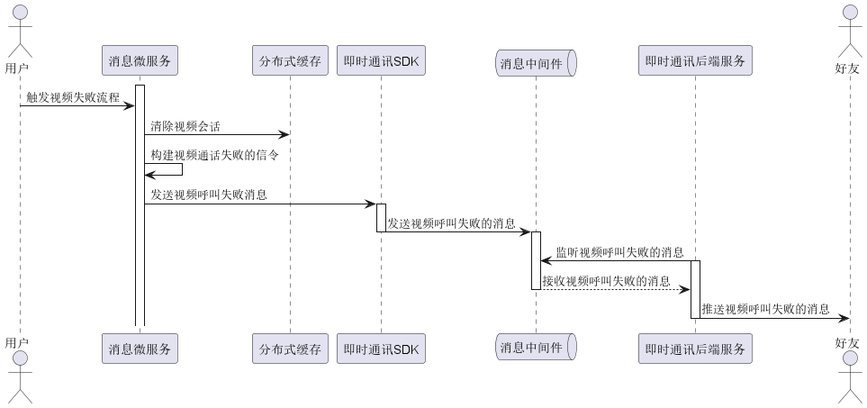 当用户向好友发送视频呼叫时,还有一种场景就是呼叫失败,例如呼叫中途由于网络异常等因素导致呼叫被迫中断,那此时如何处理呢?这个时候也应该有一种通信机制来告诉通信的双方视频通话呼叫失败了。