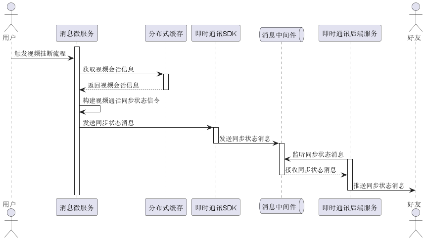 用户与好友进行视频通话的过程中,视频通话的会话状态是需要在通话双方进行同步的,并且默认情况下,这种会话状态的同步流程,对于通话双方来说是无感的,这种会话状态的同步机制,更多的是从系统层面来保证通话双方的会话状态一致。