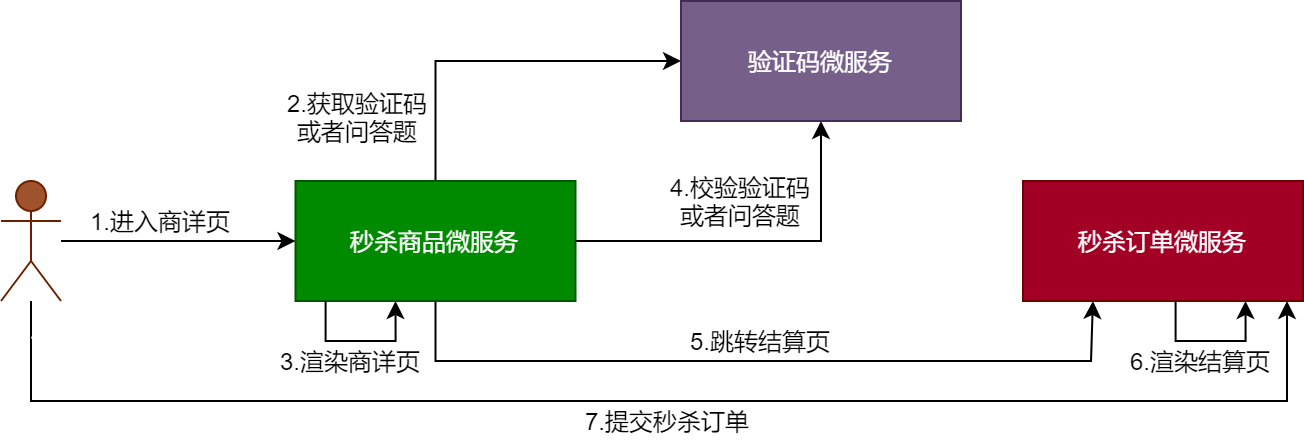 可以看到,如果秒杀系统引入了验证码和问题答,则可以按照如下流程进行验证码获取和校验的业务处理。