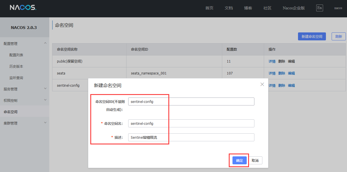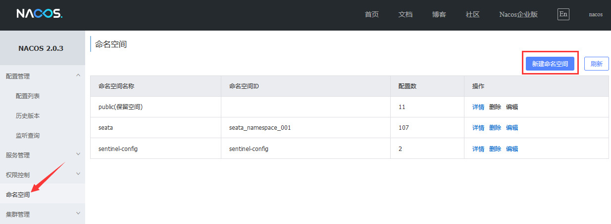 (1)在浏览器打开Nacos界面,登录后,在找到命名空间,如图81-1所示。