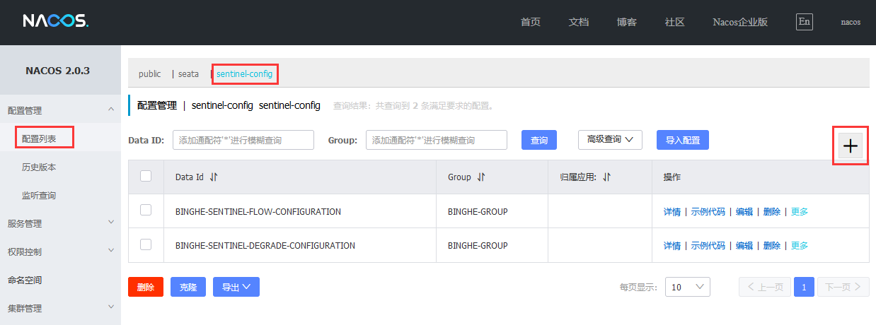 这里注意的是,在配置列表中要切换到sentinel-config命名空间。点击右上角的 + 添加Sentinel配置。