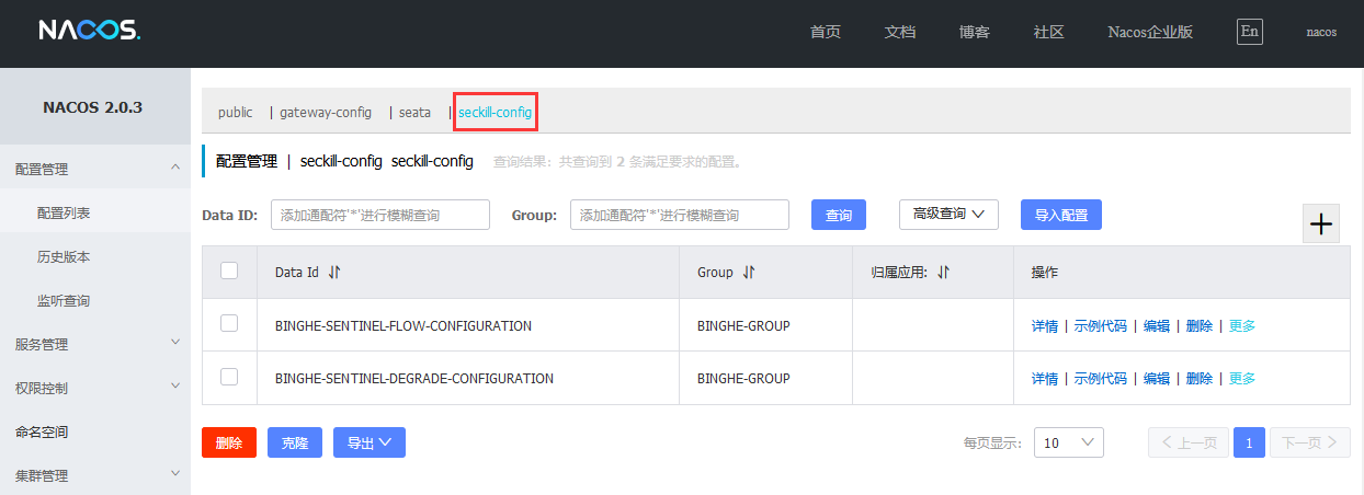 (1)启动Nacos,进入配置列表页