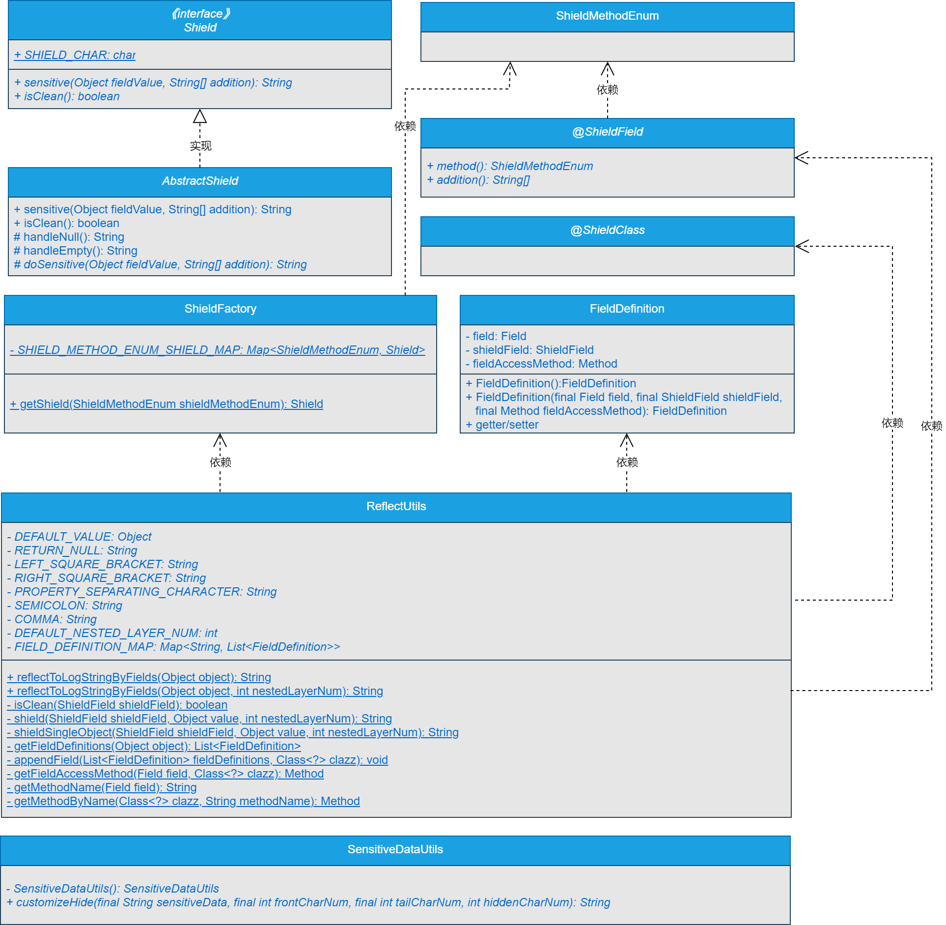 可以看到,本节新增了FieldDefinition类、ShieldFactory类和RefectUtils类。其中,RefectUtils类中即处理了反射相关的逻辑,也处理注解解析相关的逻辑。